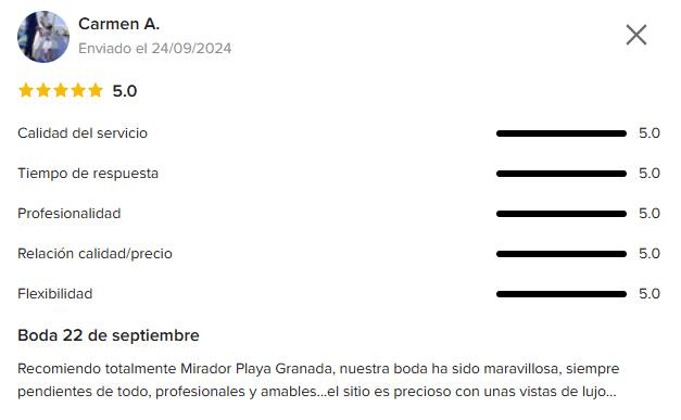 De notre grande salle ouverte et vitrée, baignée de lumière naturelle et offrant une vue sur la mer, aux terrasses spacieuses idéales pour les cérémonies en plein air. Au Mirador Playa Granada, vous trouverez l’espace idéal pour votre mariage.